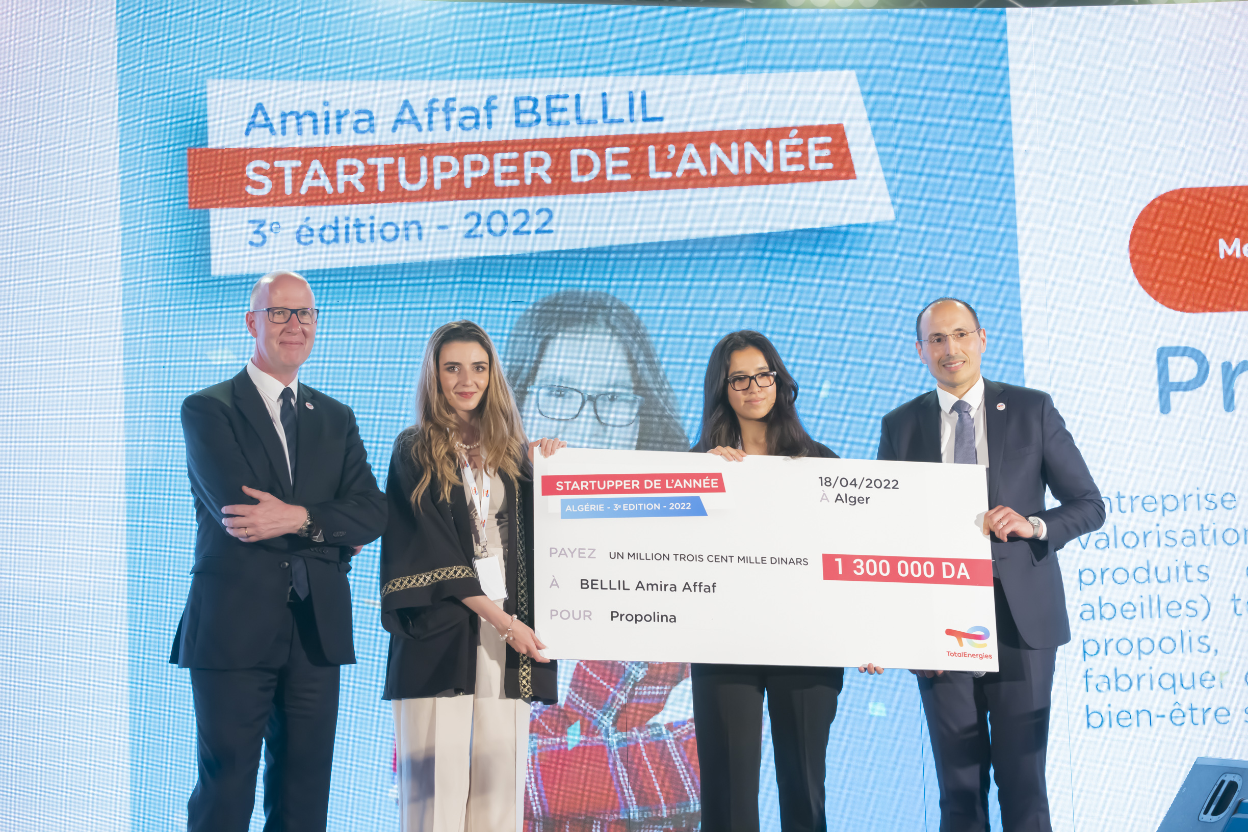 - AmiraAffaf BELLIL pour le prix de la meilleure entrepreneuse avec « Propolina » : entreprise spécialisée dans la valorisation et la transformation des produits de la ruche (trésors des abeilles) tels que le miel, le pollen, la propolis, la cire d’abeille, afin de fabriquer des produits beauté, santé et bien-être sains et 100% naturels.