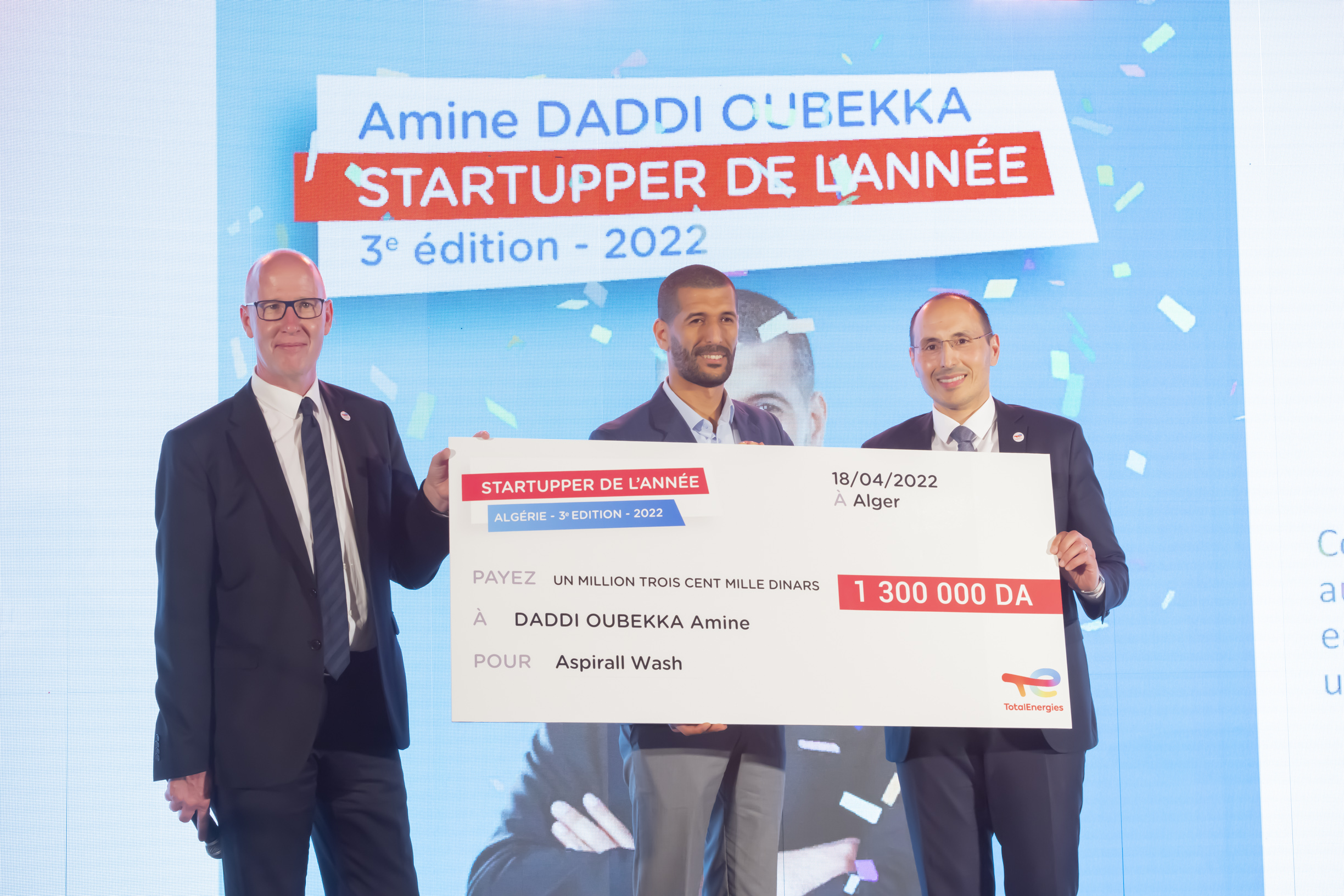 - Amine DADDI OUBEKKA pour le prix du meilleur projet de création d’entreprise avec« Aspirall Wash » : concept écologique de lavage mobile et autonome de véhicules, économique en eau, fonctionnant à l’énergie solaire et utilisant des produits nettoyants de qualité.