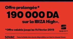 Sovac Algérie : prolongation de la remise sur la Seat Ibiza High+