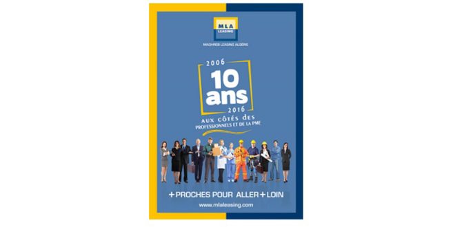 Née en 2006, Maghreb Leasing Algérie (MLA), créée à l’initiative de Tunisie Leasing avec le concours de son actionnaire de référence le Groupe Amena, a fêté lundi dernier ses 10 ans d’activité au service de ses clients et partenaires.