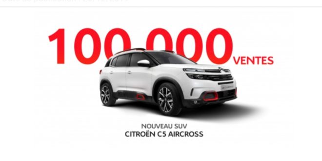 Moins d’un an après son lancement, Nouveau SUV Citroën C5 Aircross totalise déjà plus de 100 000 ventes.