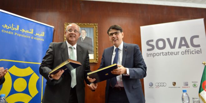 Communiqué de presse : Le Crédit Populaire d’Algérie et le Groupe SOVAC ont procédé, mercredi 22 février 2017, à la signature d’une convention de partenariat portant sur la prise en charge, par la Banque, des besoins de financement, d’investissement et d’exploitation exprimés dans le cadre du projet industriel initié par la SPA SOVAC Production pour la production des véhicules des Marques du Groupe Volkswagen en Algérie.