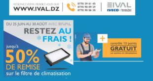 IVAL Algérie, représentant des marques italiennes Iveco, Fiat Professional et New Holland, lance une campagne promotionnelle sur la climatisation en cette période de grande chaleur du 25 juin au 30 août prochain. IVAL rappelle que le système d’air climatisé, qui assure le confort pendant les périodes chaudes de l’année, participe …