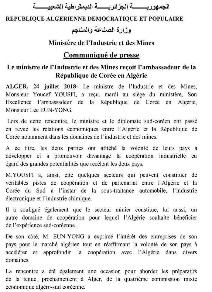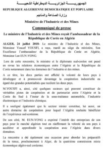Ministre de l’Industrie – République de Corée en Algérie 1